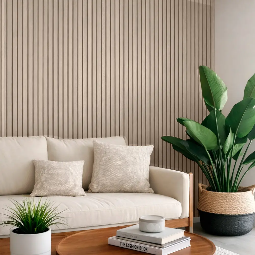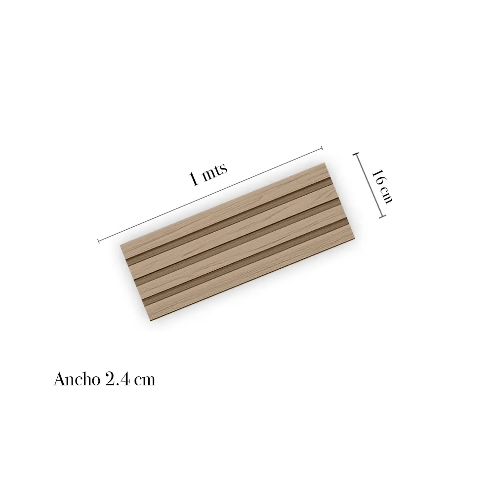 El lambrín interior de WPC es un recubrimiento decorativo para muros y plafones que combina fibras de madera y polímeros para ofrecer apariencia tipo madera, alta resistencia, estabilidad dimensional y bajo mantenimiento. Su diseño aporta calidez y textura a espacios residenciales y comerciales, y puede instalarse con adhesivo, tornillería oculta o sistema de clips según el modelo. Es resistente a la humedad ambiental, no se deforma y funciona idealmente en muros interiores, plafones, recepciones, cabeceras y oficinas, siempre en superficies firmes y secas y exclusivamente para uso interior.