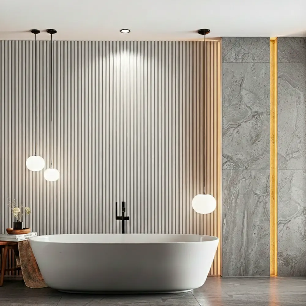 El lambrín interior de WPC es un recubrimiento decorativo para muros y plafones que combina fibras de madera y polímeros para ofrecer apariencia tipo madera, alta resistencia, estabilidad dimensional y bajo mantenimiento. Su diseño aporta calidez y textura a espacios residenciales y comerciales, y puede instalarse con adhesivo, tornillería oculta o sistema de clips según el modelo. Es resistente a la humedad ambiental, no se deforma y funciona idealmente en muros interiores, plafones, recepciones, cabeceras y oficinas, siempre en superficies firmes y secas y exclusivamente para uso interior.