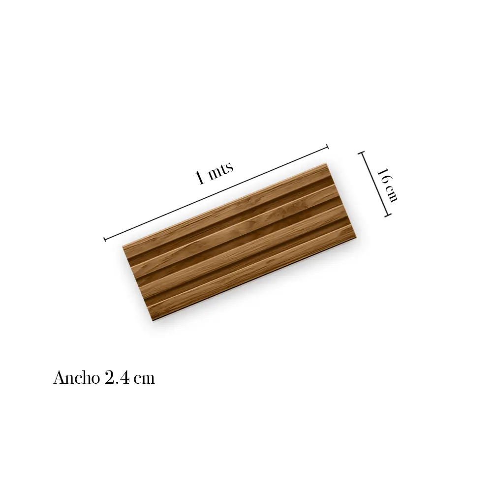 El lambrín interior de WPC es un recubrimiento decorativo para muros y plafones que combina fibras de madera y polímeros para ofrecer apariencia tipo madera, alta resistencia, estabilidad dimensional y bajo mantenimiento. Su diseño aporta calidez y textura a espacios residenciales y comerciales, y puede instalarse con adhesivo, tornillería oculta o sistema de clips según el modelo. Es resistente a la humedad ambiental, no se deforma y funciona idealmente en muros interiores, plafones, recepciones, cabeceras y oficinas, siempre en superficies firmes y secas y exclusivamente para uso interior.