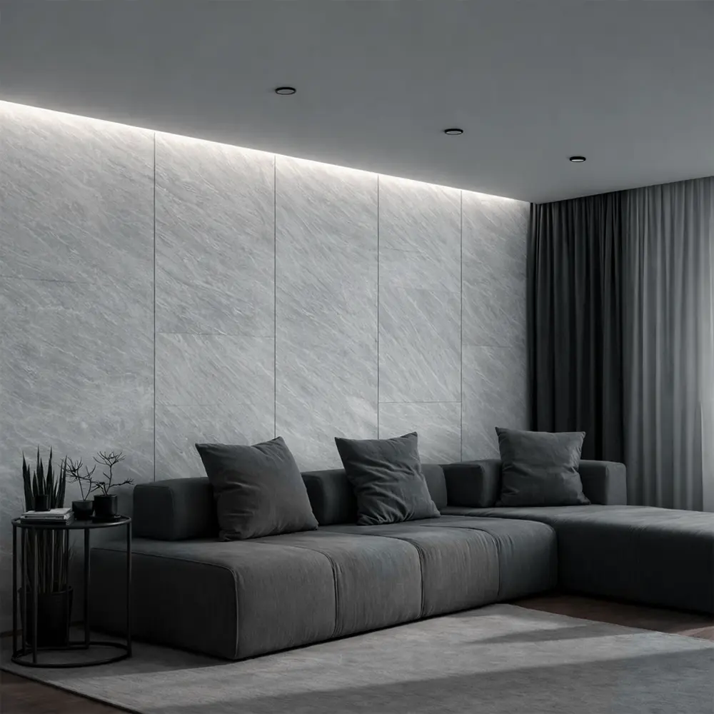Recubrimiento decorativo que imita el mármol natural, ofreciendo un acabado elegante y moderno con un material ligero, práctico y accesible. Su fabricación en PVC de alta calidad incluye una superficie impresa tipo mármol, capa protectora resistente y un cuerpo flexible que facilita la instalación. Ideal para muros interiores en: