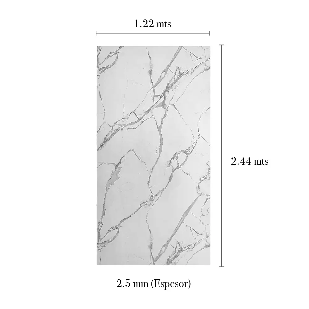 Recubrimiento decorativo que imita el mármol natural, ofreciendo un acabado elegante y moderno con un material ligero, práctico y accesible. Su fabricación en PVC de alta calidad incluye una superficie impresa tipo mármol, capa protectora resistente y un cuerpo flexible que facilita la instalación. Ideal para muros interiores en: