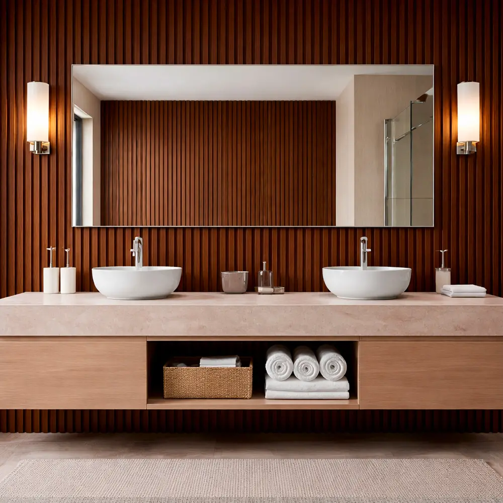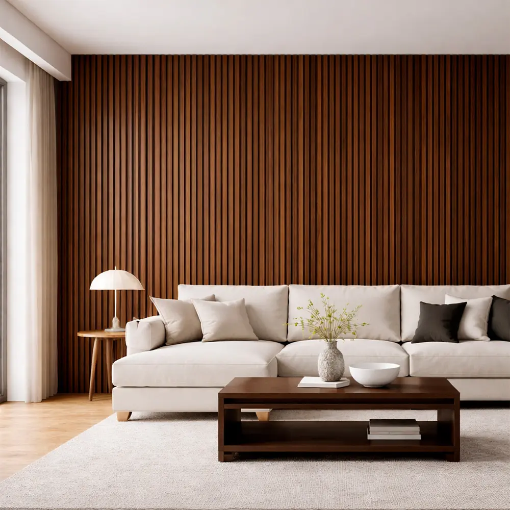 El lambrín interior de WPC es un recubrimiento decorativo para muros y plafones que combina fibras de madera y polímeros para ofrecer apariencia tipo madera, alta resistencia, estabilidad dimensional y bajo mantenimiento. Su diseño aporta calidez y textura a espacios residenciales y comerciales, y puede instalarse con adhesivo, tornillería oculta o sistema de clips según el modelo. Es resistente a la humedad ambiental, no se deforma y funciona idealmente en muros interiores, plafones, recepciones, cabeceras y oficinas, siempre en superficies firmes y secas y exclusivamente para uso interior.