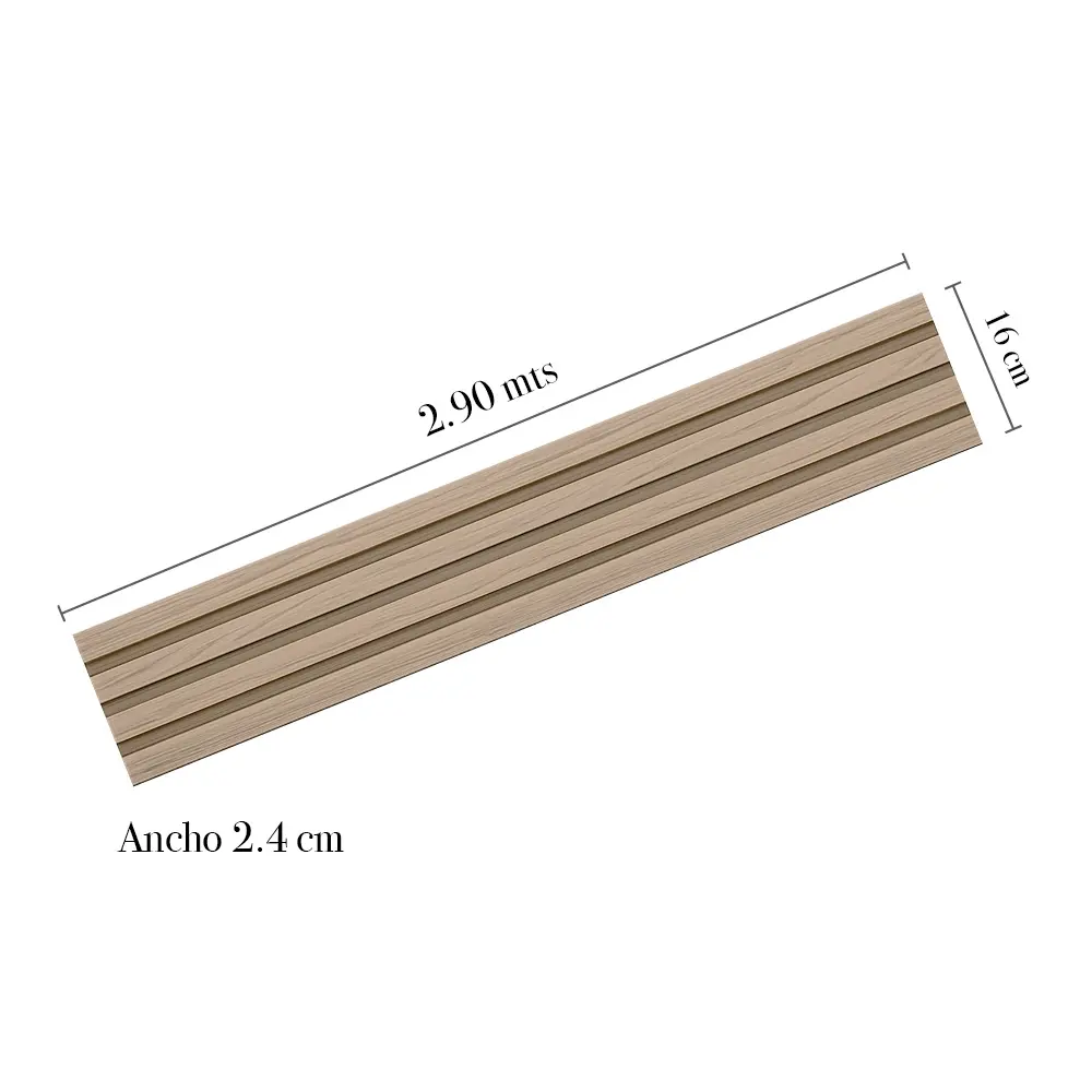 El lambrín interior de WPC es un recubrimiento decorativo para muros y plafones que combina fibras de madera y polímeros para ofrecer apariencia tipo madera, alta resistencia, estabilidad dimensional y bajo mantenimiento. Su diseño aporta calidez y textura a espacios residenciales y comerciales, y puede instalarse con adhesivo, tornillería oculta o sistema de clips según el modelo. Es resistente a la humedad ambiental, no se deforma y funciona idealmente en muros interiores, plafones, recepciones, cabeceras y oficinas, siempre en superficies firmes y secas y exclusivamente para uso interior.