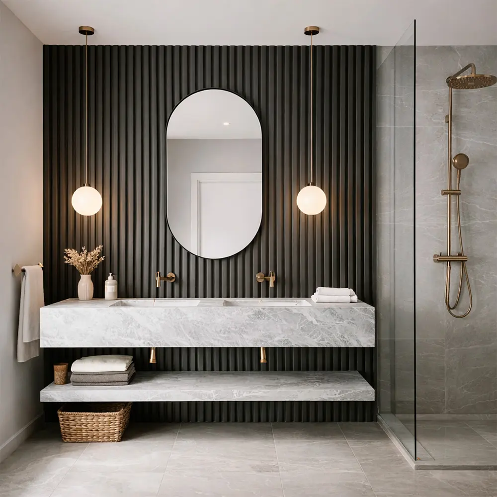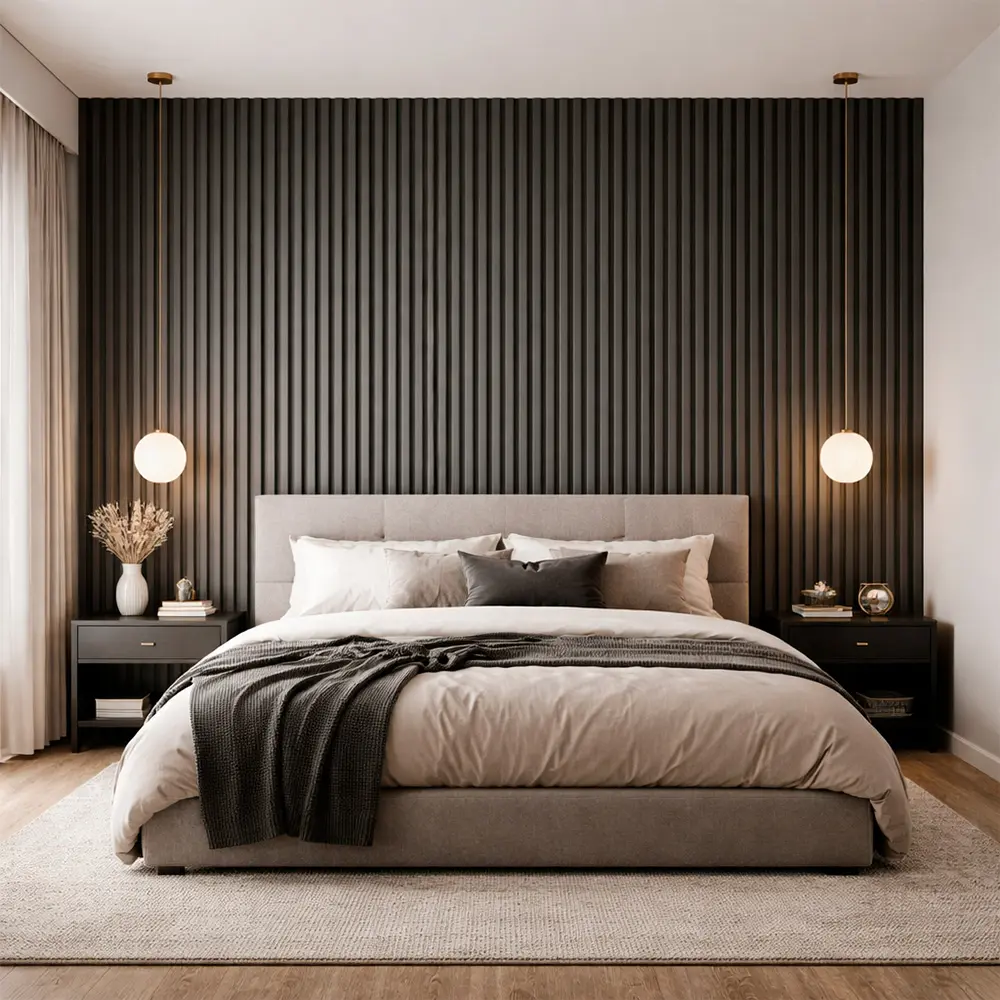 El lambrín interior de WPC es un recubrimiento decorativo para muros y plafones que combina fibras de madera y polímeros para ofrecer apariencia tipo madera, alta resistencia, estabilidad dimensional y bajo mantenimiento. Su diseño aporta calidez y textura a espacios residenciales y comerciales, y puede instalarse con adhesivo, tornillería oculta o sistema de clips según el modelo. Es resistente a la humedad ambiental, no se deforma y funciona idealmente en muros interiores, plafones, recepciones, cabeceras y oficinas, siempre en superficies firmes y secas y exclusivamente para uso interior.